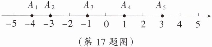17. 抽象能力如图,一条直线流水线上依次有 5 个机器人,它们站的位置在数轴上依次用点 $ A_1,A_2,A_3,A_4,A_5 $ 表示。