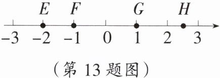 13. 根据数轴判断绝对值如图,数轴上有 $ E,F,G,H $ 四个点,其中表示绝对值相等的一对点是(