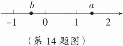 14. 已知实数 $ a,b $ 在数轴上对应的点如图所示,则计算 $ | b | - | a | $ 的结果为(