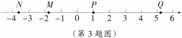 3. 习题衍生教材 P17,T2 改编 已知点 M,N,P,Q 在数轴上的位置如图所示,则其中对应的数的绝对值最大的点是 (