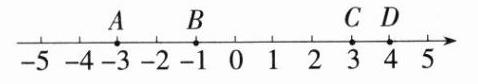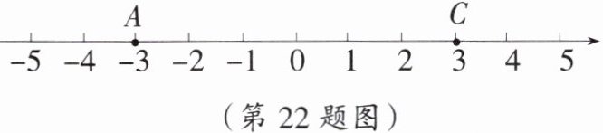 22. (10分)如图,点A,C在数轴上,所对应的数分别为-3,3,已知数轴上从左到右依次有点A,B,C,D,其中A,B两点间的距离是2个单位长度,C,D两点间的距离是1个单位长度。
