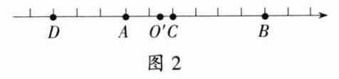 (2)如图 2,此时点$O'$为原点,点 C 表示的数是 0.5,点 D 表示的数是-4.5.