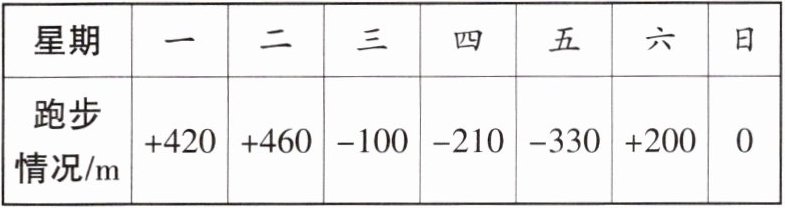 (2)最少的一天跑了1000-330=670(m),跑得最多的一天比最少的一天多跑了460-(-330)=790(m);