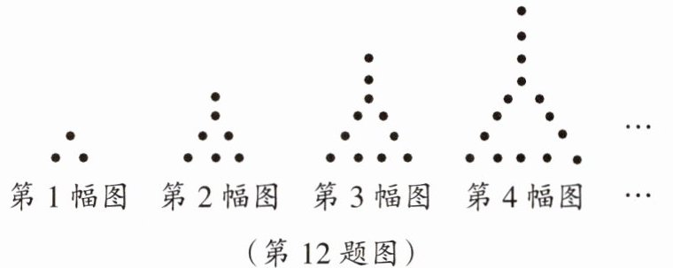 12. 如图,用相同的圆点按照一定的规律拼出图形。第1幅图3个圆点,第2幅图7个圆点,第3幅图11个圆点,第4幅图15个圆点……按照此规律,第100幅图中圆点的个数是(