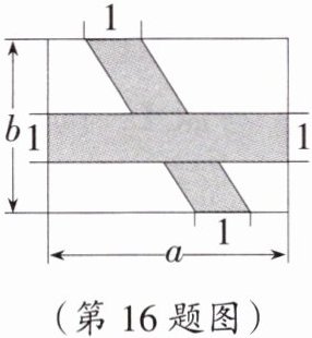 16. 如图是一个长为$a$,宽为$b$的长方形,两个阴影图形都是一对底边长为1且底边在长方形对边上的平行四边形。