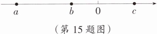 15. 已知有理数 $a$,$b$,$c$ 在数轴上的位置如图所示,化简:$|c - a| - |a - b| + |b - c|$。
