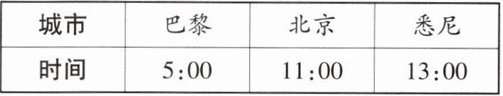 12. 巴黎、北京、悉尼同一时刻的当地时间如表所示.若北京时间记为0,用正数表示同一时刻比北京时间早的时数,即悉尼时间记为$+2$,则巴黎时间记为