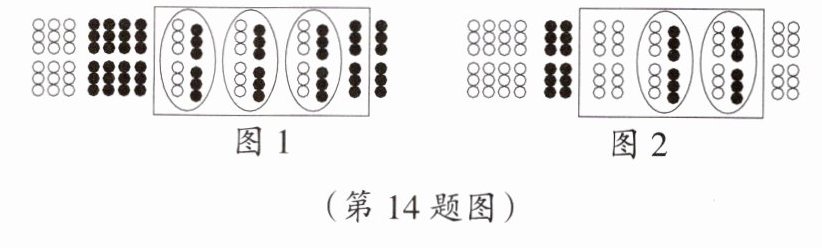 14. 数学文化 我国是最早认识负数,并进行相关运算的国家.古代数学名著《九章算术》就记载了利用算筹实施“正负术”的方法,图1表示的是计算$3 + (-4)$的过程,按照这种方法,图2表示的过程是在计算