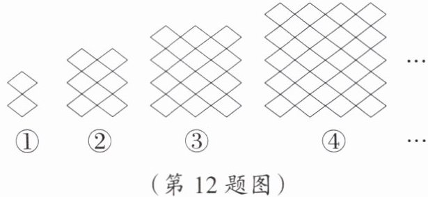 12. 规律探究 平移小菱形◇可以得到美丽的“中国结”图案,如图四个图案是由小菱形◇平移后得到的类似“中国结”的图案,按图中规律,第n个图案中,小菱形的个数是(