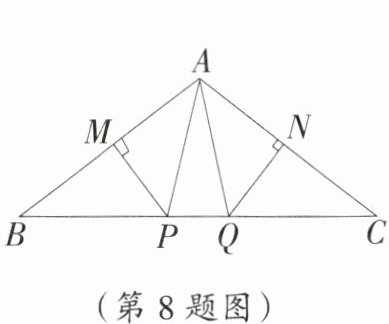8. 如图,∠BAC = 110°,若 MP 和 NQ 分别垂直平分 AB 和 AC,则∠PAQ 的度数是(