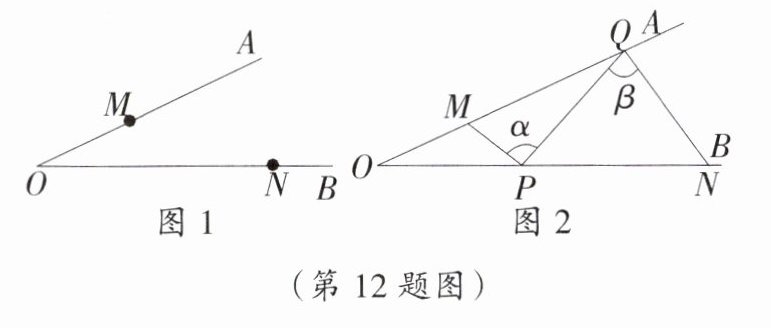 12. 构建模型法 推理能力 如图,∠AOB = 20°,点 M,N 分别是边 OA,OB 上的定点,点 P,Q 分别是边 OB,OA 上的动点.