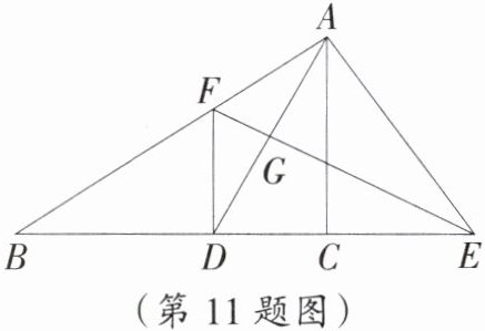 11. 如图,在△ABC 中,∠BAD = ∠CAD,AD 的垂直平分线分别交 AB 于点 F,交 BC 的延长线于点 E. 求证: