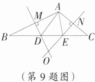 9. 推理能力 如图,在△ABC 中,边 AB 的垂直平分线 OM 与边 AC 的垂直平分线 ON 交于点 O,这两条垂直平分线分别交 BC 于点 D,E. 已知△ADE 的周长为 13 cm.
