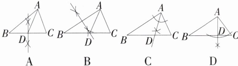 1. 例题变式教材 P131,例 3 改编 下列尺规作图,能确定 $ AD = BD $ 的是(