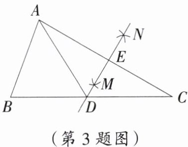 3. 如图,在 $ \triangle ABC $ 中,$ \angle B = 55° $,$ \angle C = 30° $,分别以点 $ A $ 和点 $ C $ 为圆心,大于 $ \frac{1}{2}AC $ 的长为半径画弧,两弧相交于点 $ M $,$ N $,作直线 $ MN $,交 $ BC $ 于点 $ D $,交 $ AC $ 于点 $ E $,连接 $ AD $,则 $ \angle BAD $ 的度数为(