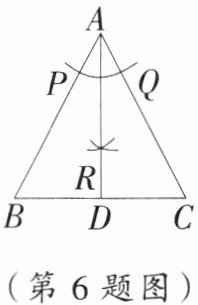 6. 习题变式教材 P138,T6 改编 如图,在△ABC 中,以点 A 为圆心,任意长为半径画弧,交 AB 于点 P,交 AC 于点 Q,分别以点 P,Q 为圆心,大于 $\frac{1}{2}PQ$ 长为半径画弧,两弧在∠BAC 的内部相交于点 R,连接 AR 并延长交 BC 于点 D,根据题干描述,添加一个条件,不能使△ABD≌△ACD 的是(
