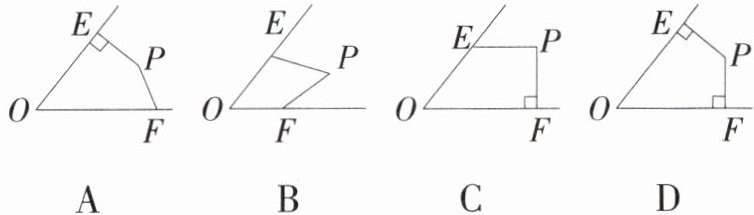 3. 练习变式教材 P136,T2 改编 如图所示的图形中,若 PE= PF,能判断点 P 在∠EOF 的平分线上的是(