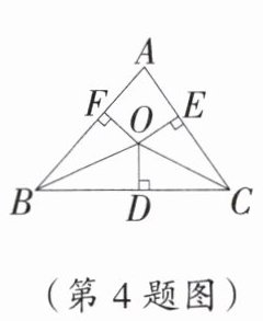 4. 习题衍生教材 P137,T3 改编 如图,O 是△ABC 内一点,且点 O 到三边 AB,BC,CA 的距离相等(即 OF= OD= OE),若∠BAC= 80°,则∠BOC 的度数为(