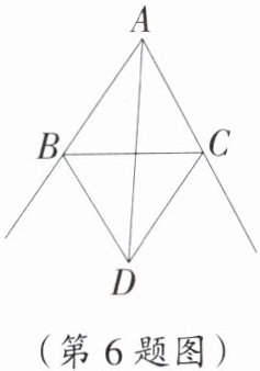 6. 易错题 如图,已知 $\triangle ABC$ 中的 $\angle ABC$,$\angle ACB$ 的外角平分线交于点 $D$,$AD$ 是 $\angle BAC$ 的平分线吗?说明理由。