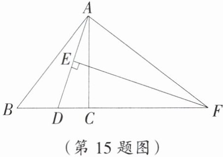 15. (14 分)如图,在$ \triangle ABC $ 中,$ AD $ 平分 $ \angle BAC $,$ FE \perp AD $ 于点 $ E $,交 $ BC $ 的延长线于点 $ F $,连接 $ AF $,恰有 $ \angle FAC = \angle B $.求证:$ EF $ 是 $ AD $ 的垂直平分线.