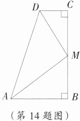 14. (12 分)如图,$ \angle B = \angle C = 90^{\circ} $,$ M $ 是 $ BC $ 的中点,$ DM $ 平分 $ \angle ADC $.求证:$ AM $ 平分 $ \angle DAB $.