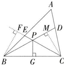 证明:如图,作BF⊥CE,交CE的延长线于点F,作CM⊥BD于点M,则∠PFB=∠PMC=90°.