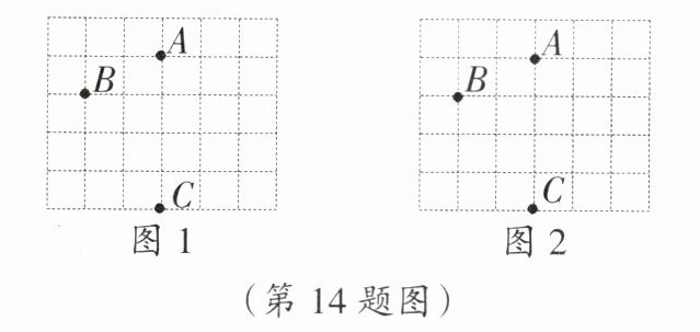 14. 开放性试题 图1、图2均为6×5的正方形网格,点A,B,C在格点上.