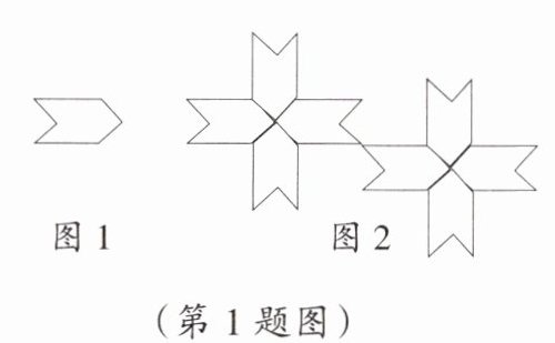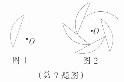 7. 利用图形的旋转可以设计出许多美丽的图案。如图2中的图案是由图1所示的基本图案以点O为旋转中心,顺时针(或逆时针)旋转角度α,依次旋转四次而组成的,则旋转角α的值不可能是(