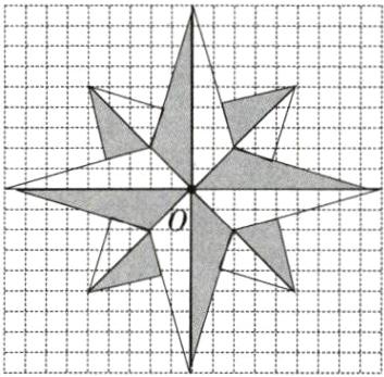 5. 习题高仿教材P147,T5改编如图是某设计师设计的方桌边图案的一部分。请你运用旋转变换的方法,在方格纸上将该图形绕点O顺时针依次旋转90°,180°,270°,并画出旋转后的图形。