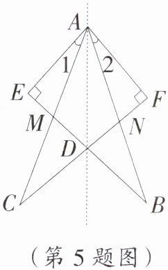 5. 如图,直角三角形$AFC和直角三角形AEB$关于虚线成轴对称,现给出下列结论: