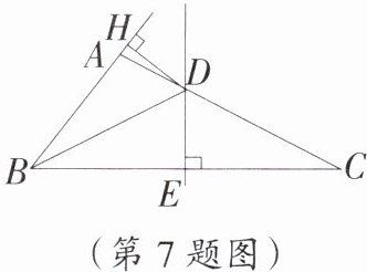 7. 如图,在$\triangle ABC$中,$DE垂直平分BC$,$BD平分\angle ABC$,$DH\perp BA$,交$BA的延长线于点H$.