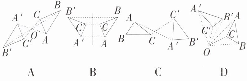 4. 下列图形中,$\triangle A^{\prime}B^{\prime}C^{\prime}与\triangle ABC$成中心对称的是(