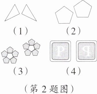 2. 分别观察图(1)~(4)中的两个图形,判断它们是否分别关于某条直线成轴对称,并说明原因.