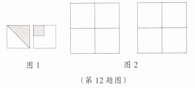 12. 现有如图1所示两种花纹的正方形地砖各若干块,安装在图2中两块正方形地面上,要求拼成两种不同的图案,且拼出的每种图案都满足下列条件:
