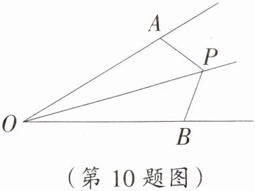 10. 如图,$P为\angle AOB$内一点,$OA= OB$,且$\triangle OPA与\triangle OPB$面积相等.求证:$\angle AOP= \angle BOP$.