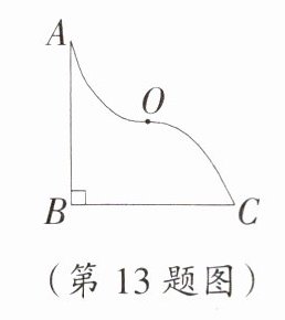 13. 如图,$AB\perp BC$,$AB= BC= 2\mathrm{cm}$,曲线$OA与曲线OC关于点O$成中心对称,则$AB$,$BC$,曲线$OC$,曲线$OA$所围成图形的面积是