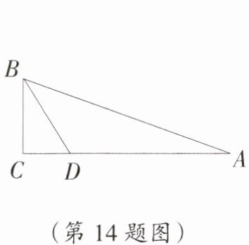 14. 如图,在△ABC中$,∠C= 90°,AC= 8,DC= \frac{1}{3}AD,BD$平分∠ABC,则点D到AB的距离等于