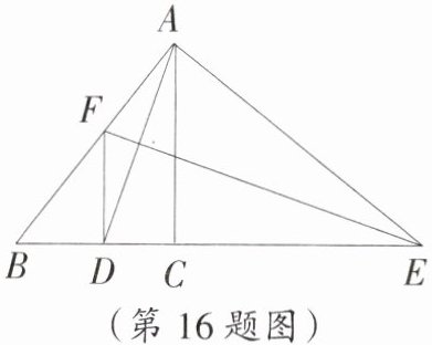 16. 如图,已知AD是△ABC的角平分线,AD的垂直平分线交AB于点F,交BC的延长线于点E,连接FD,AE.以下四个结论: