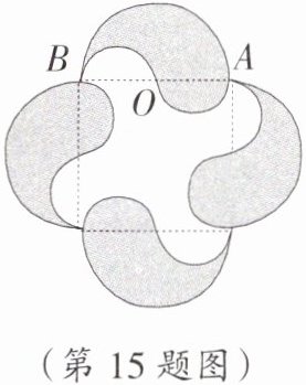 15. 转化思想 如图为某公园中心对称的观赏鱼池,阴影部分为观赏喂鱼台,已知OA= OB= 2m.则阴影部分的面积为