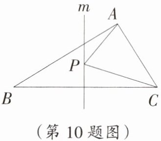 10. 最值问题 如图,直线m是△ABC中BC边的垂直平分线,P是直线m上的一动点.若AB= 5,AC= 4,BC= 6,则△APC周长的最小值是 (