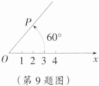 9. 新定义型阅读理解题 在平面内由极点、极轴和极径组成的坐标系叫作极坐标系.如图,在平面上取定一点O称为极点;从点O出发引一条射线Ox称为极轴;线段OP的长度称为极径.点P的极坐标就可以用线段OP的长度以及从Ox转动到OP的角度(规定逆时针方向转动角度为正)来确定,即P(3,60°)或P(3,-300°)或P(3,420°)等,则点P关于点O成中心对称的点Q的极坐标表示不正确的是 (