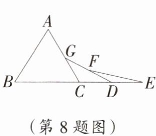 8. 几何直观如图,已知△ABC是等边三角形,点B,C,D,E在同一直线上,且CG= CD,DF= DE,则∠E的度数为(