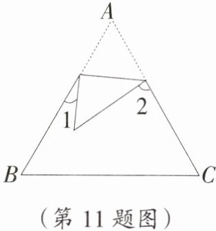 11. 已知△ABC是等边三角形,把∠A按如图所示折叠,则∠1+∠2=