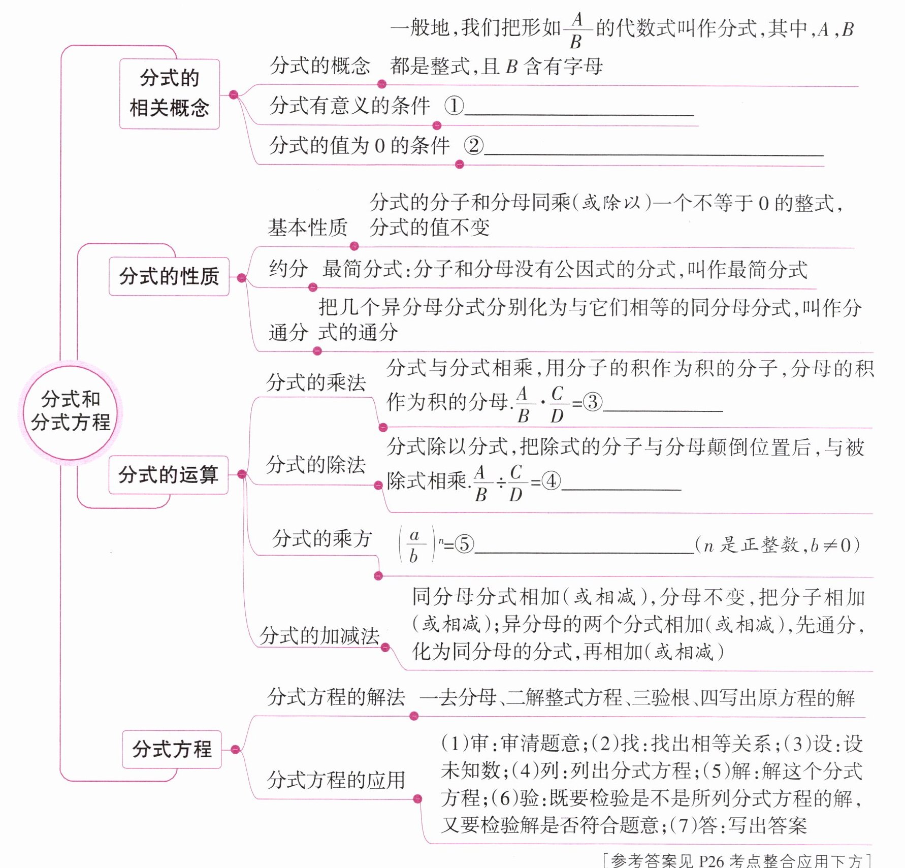 ①分母不为0;②分子、分母不为0;③$\frac{AC}{BD}$;④$\frac{AD}{BC}$;⑤$\frac{a^n}{b^n}$