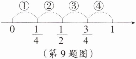 9. 如图,若$a = 6b$,$b > 0$,则$\frac{1}{a - b}·(a - \frac{2ab - b^2}{a})$的值在(