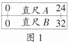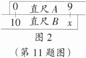 11. 数学文化 秦始皇统一度量衡意义重大,这一举措极大地方便了生产与生活。如图 1 和图 2,欣欣通过两把不同刻度的直尺说明了其中的原因,并进行如下探究:将两把尺子有刻度的一侧紧贴,则由两幅图可得方程(