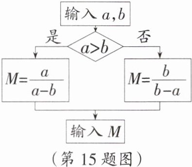 15. 程序设计 如图是一个电脑运算程序图,当输入不相等的$a$,$b$后,按照程序图运行,会输出一个结果。若$a = 5$,$b = x$时,输出的结果为$2$,则$x$的值为