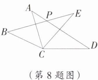 8. 如图,在△ACD和△BCE中,AC= BC,AD= BE,CD= CE,∠ACE= 55°,∠BCD= 155°,AD与BE相交于点P,则∠BPD的度数为(