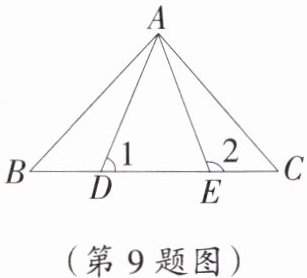9. 易错题 如图,AB= AC,AD= AE,BE= CD,∠2= 110°,∠BAE= 60°,则下列结论错误的是(