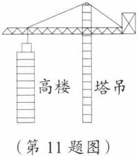 11. 如图,建高楼时常需要用塔吊来吊建筑材料,而塔吊的上部是三角形结构,这是应用了三角形的哪个性质?答: